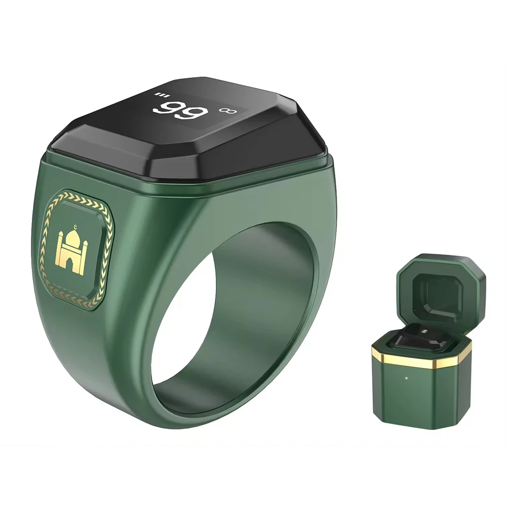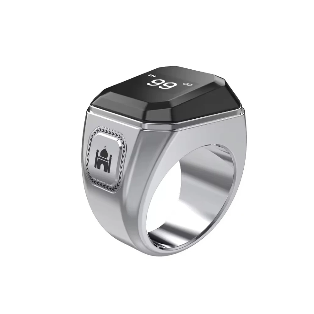 حلقه هوشمند مدل E01 یک گجت پوشیدنی با طراحی مینیمال و عملکرد معنوی است که برای کاربران مسلمان طراحی شده. این حلقه دارای صفحهنمایش دیجیتال 0.49 اینچی است که زمان را نمایش میدهد و قابلیت تنظیم یادآور برای نمازهای روزانه و اذکار را دارد. طراحی آن بهصورت دایرهای و ساده بوده و بهراحتی روی انگشت قرار میگیرد.