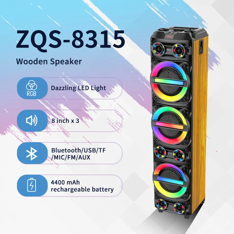 اسپیکر بلوتوثی ZQS8315 با توان ۶۰ وات، نورپردازی RGB، باتری ۴۴۰۰ میلی‌آمپر‌ساعتی و استاندارد ضد آب IPX6، گزینه‌ای مناسب برای واردکنندگان و پخش‌کنندگان عمده در بازارهای ایران، افغانستان، عراق، یمن و کشورهای حوزه خلیج فارس است.