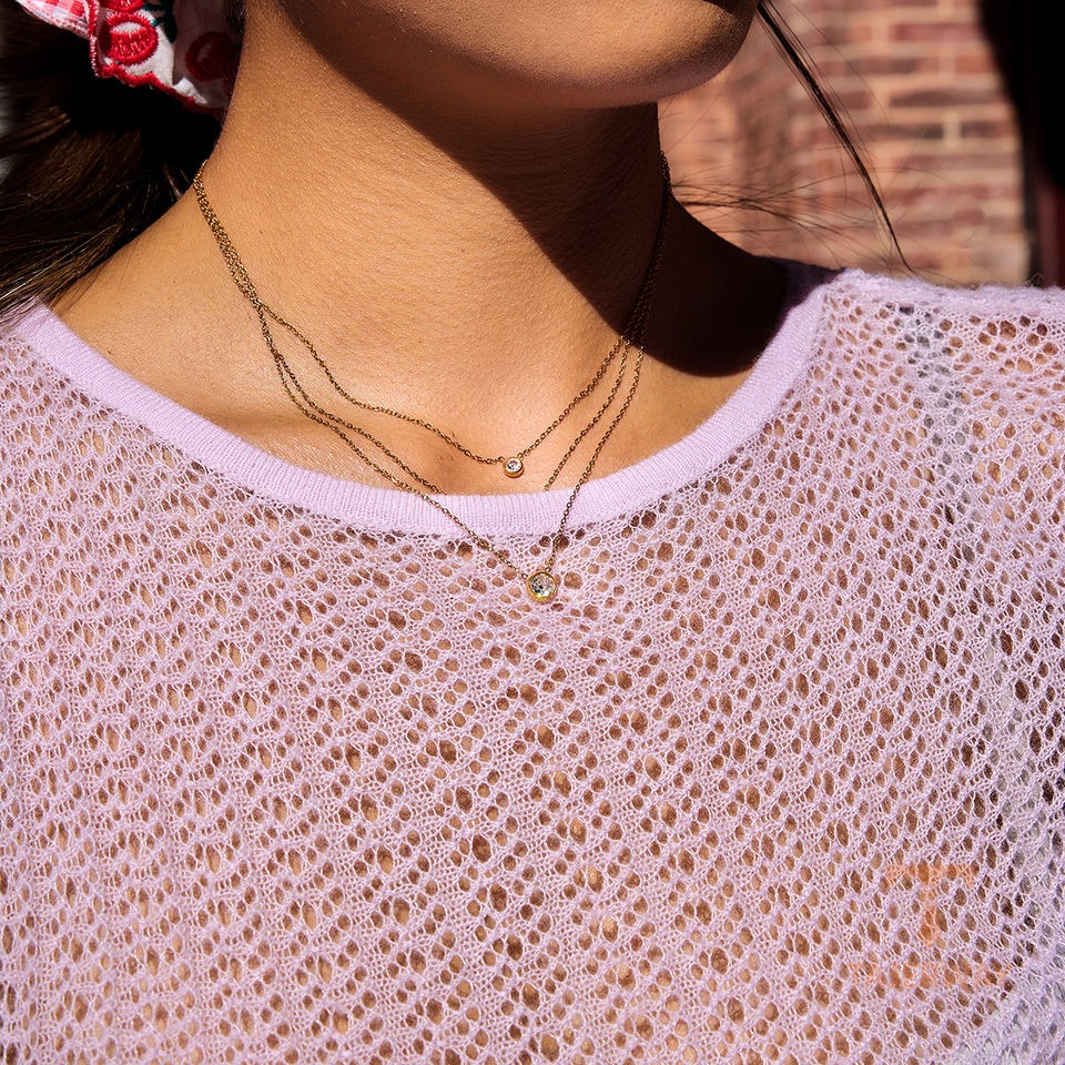 - 🎨 طراحی کلاسیک با پلاک نگین اتمی گرد و زنجیر کابلی