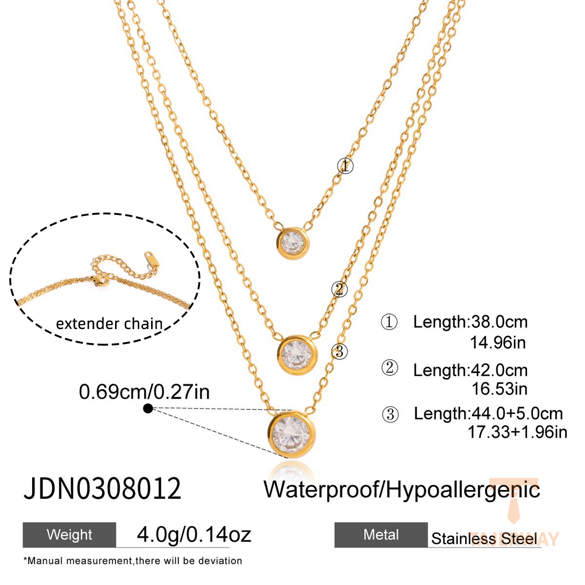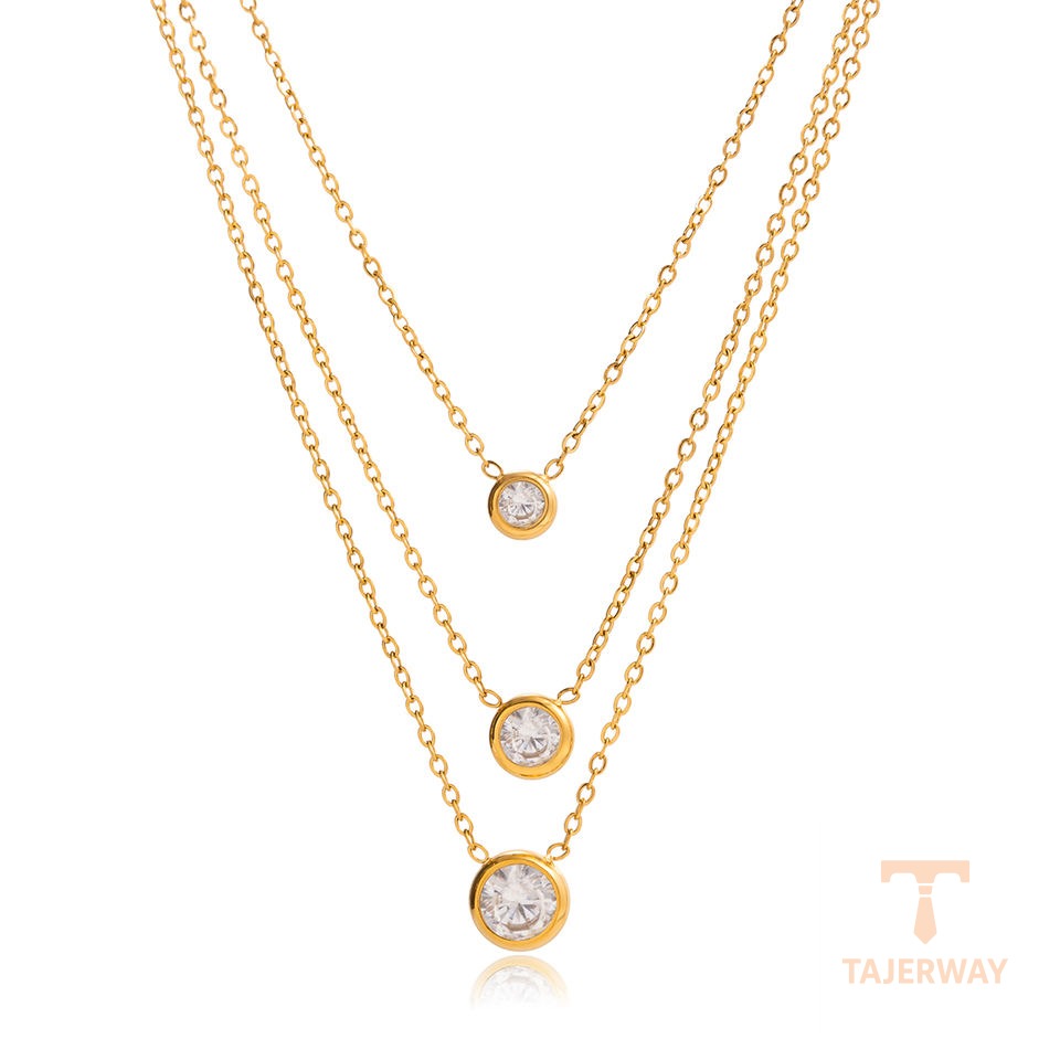 گردنبند زنجیری استیل ضدزنگ با آبکاری طلای ۱۸ عیار و پلاک نگین اتمی گرد کلاسیک J&D