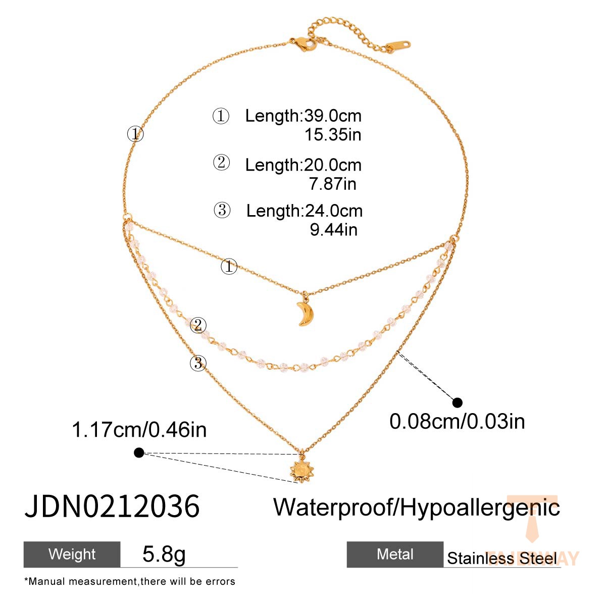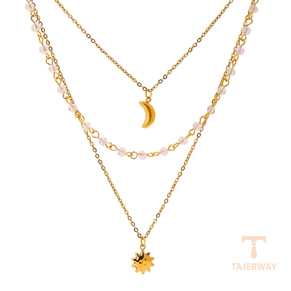 گردنبند سه لایه طرح ستاره و ماه با کریستال از استیل ضدزنگ و آبکاری طلای ۱۸ عیار برند J&D