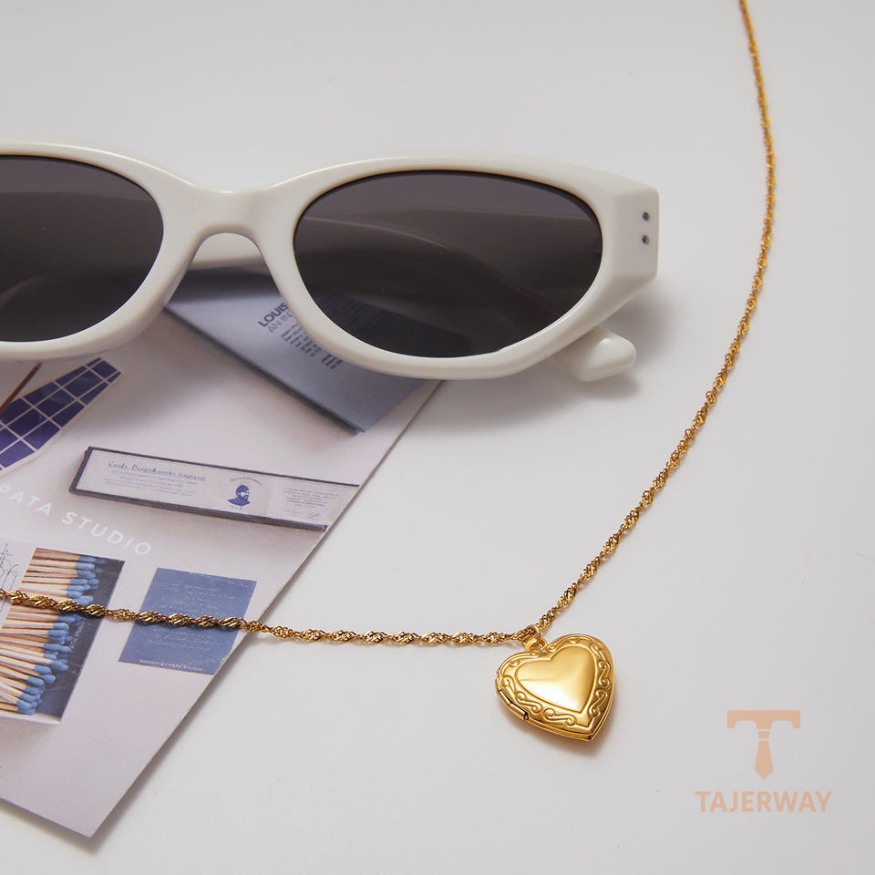 گردنبند پلاکدار طرح قلبی با زنجیر کابلی و آبکاری طلای ۱۸ عیار J&D