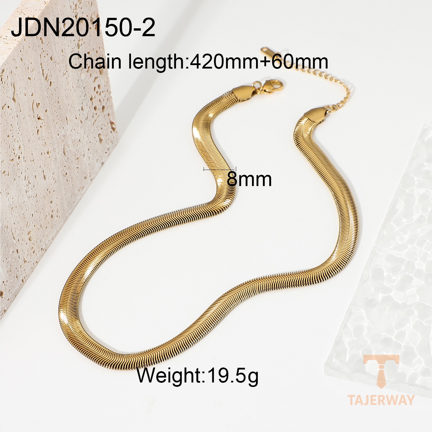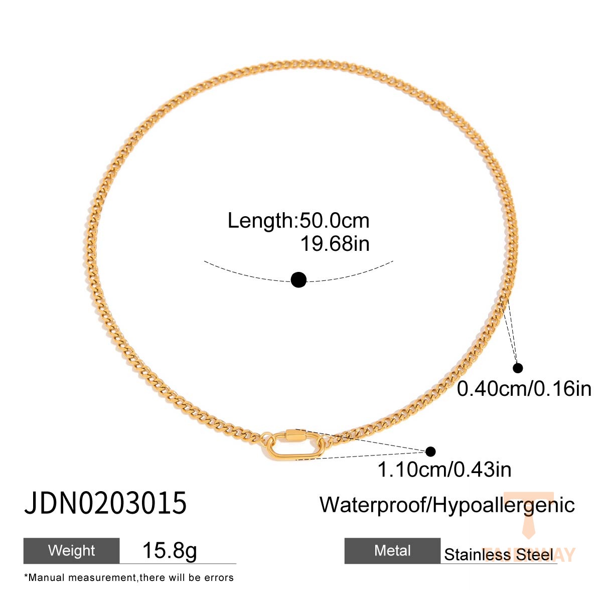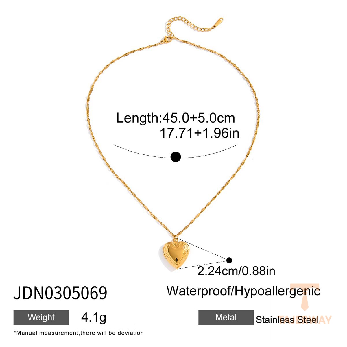 این گردنبند از استیل ضدزنگ ساخته شده و با آبکاری طلای ۱۸ عیار و روش PVD پوشش داده شده است.