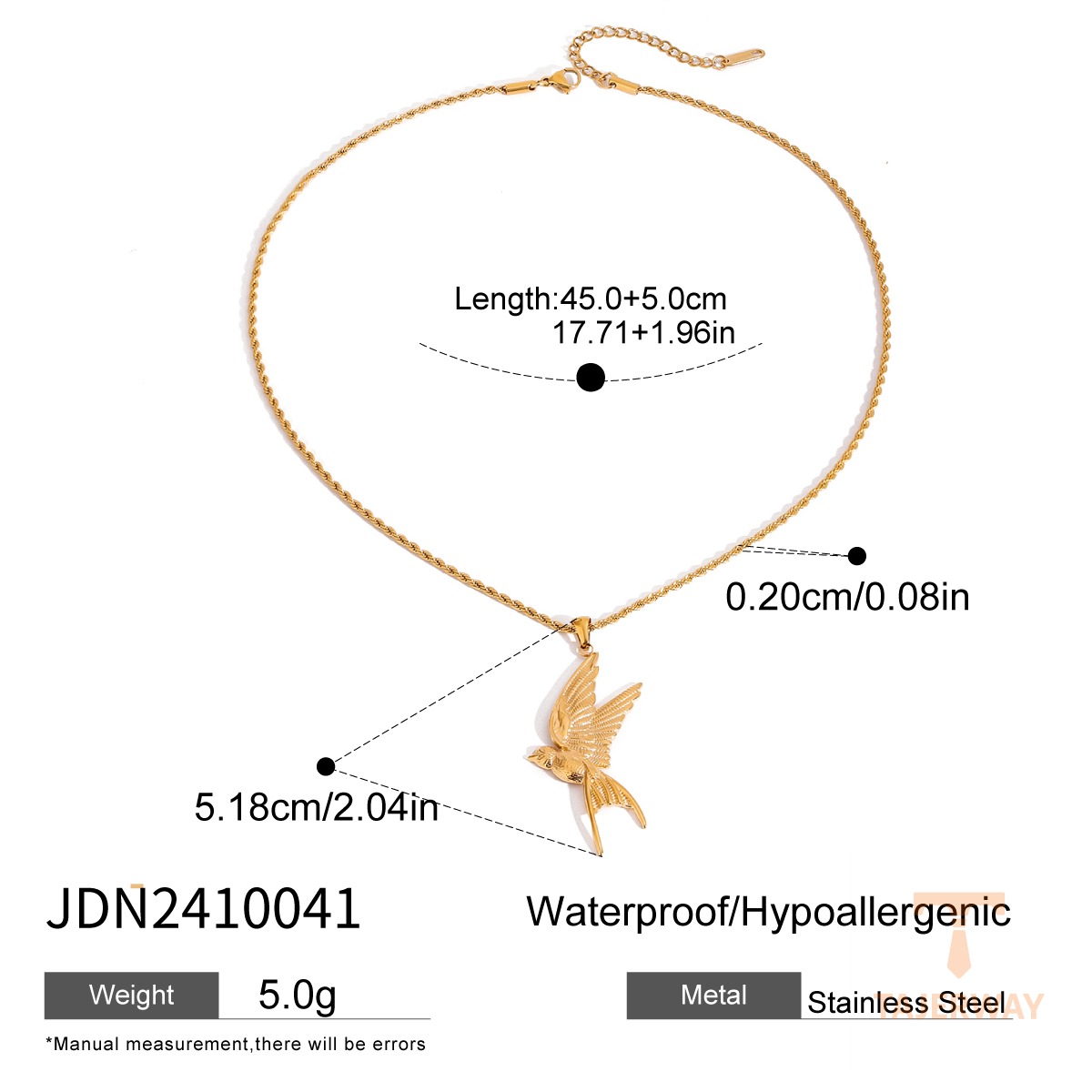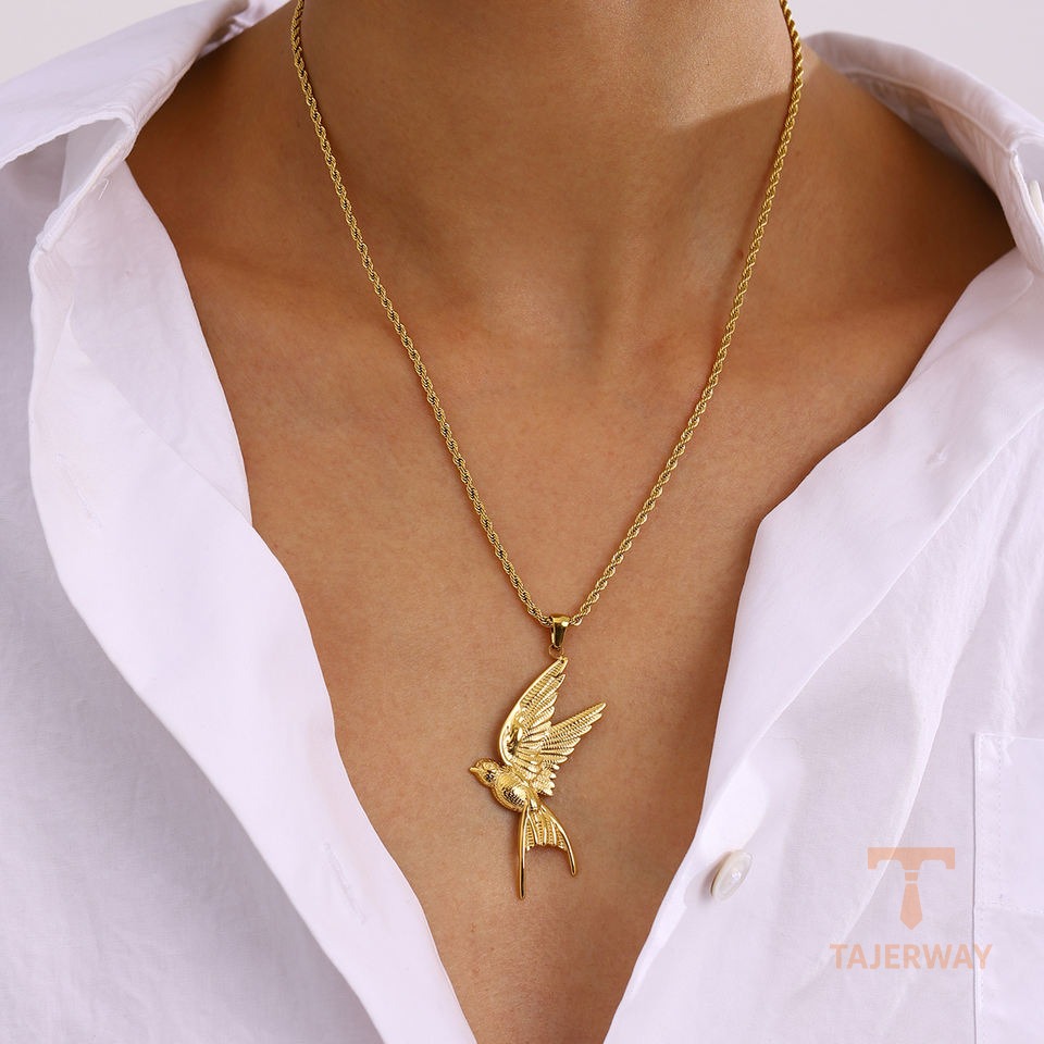 گردنبند زنجیری با زنجیر کابلی و پلاک صلح و کبوتر با آبکاری طلای ۱۸ عیار J&D