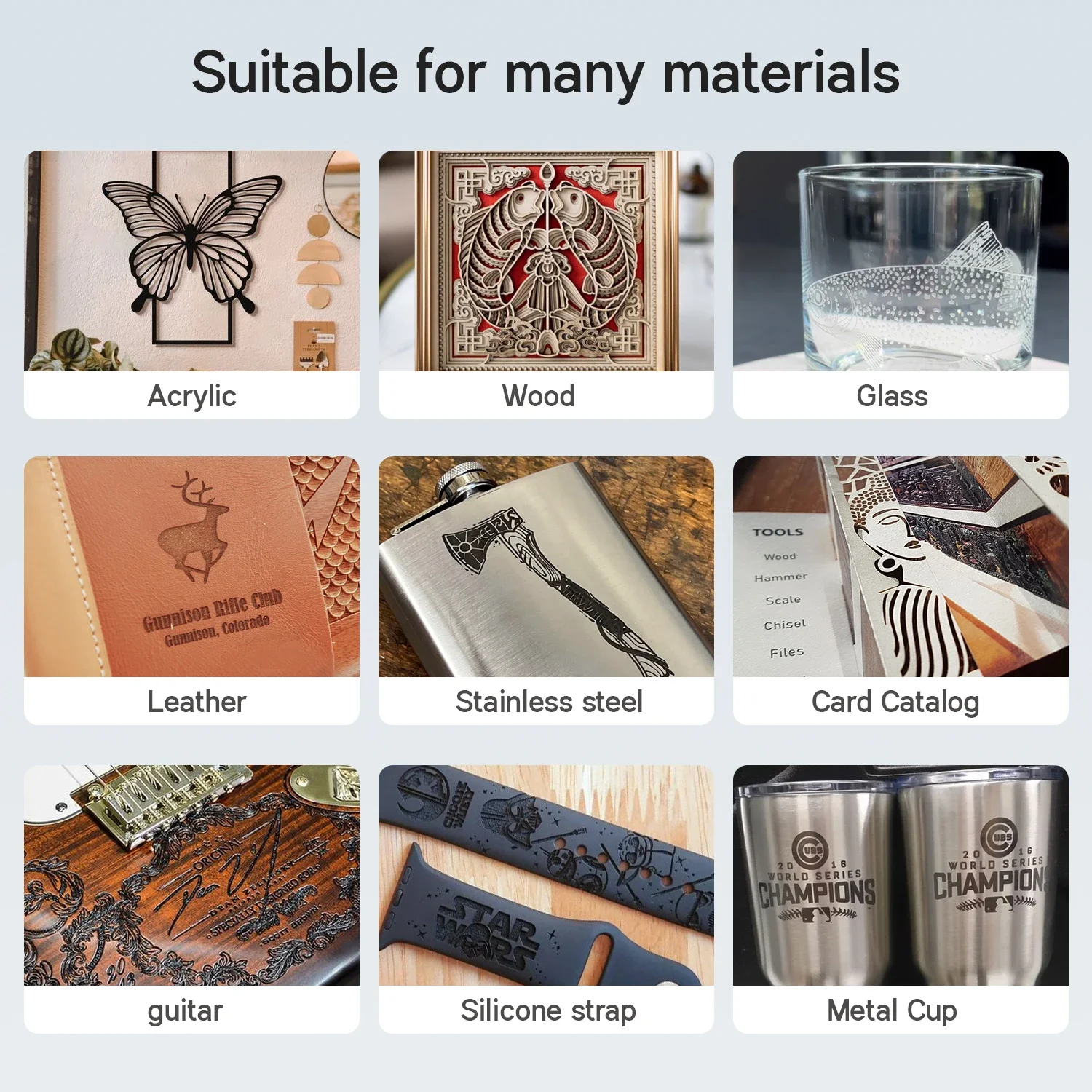 • ✅ پشتیبانی از متریالهای مختلف: چوب، فلز نرم، پلاستیک، چرم، آکریلیک